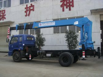 廂長4.7-4.9米,4102發(fā)動機,帶副變速,最大可選裝6.3噸吊機,該車配置的直臂式吊機,吊機布置位置為后置式,型號為TM-Z603,PYSQ141,TM-Z503、PYSQ112,質(zhì)量為2720kg,2125kg,最大起升載荷為6000kg,5000kg,選裝新前圍飾件和保險杠及前部燈具,