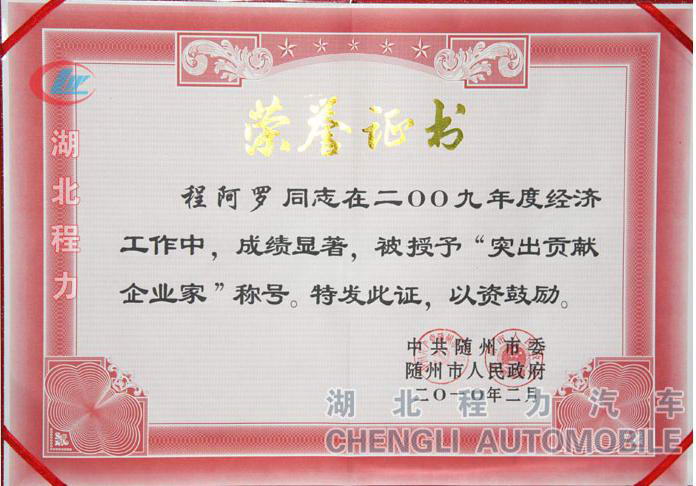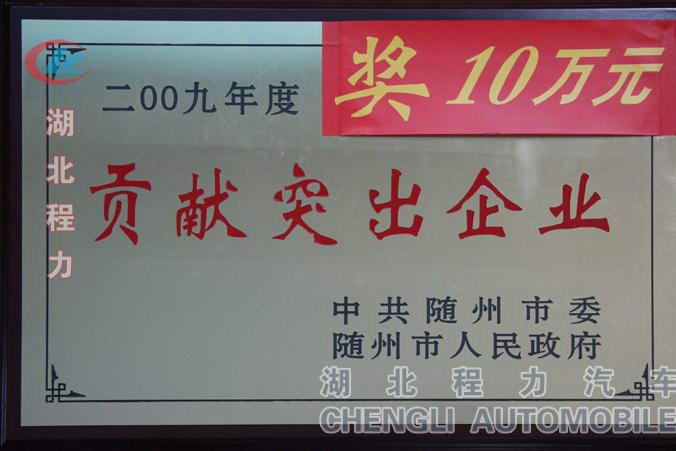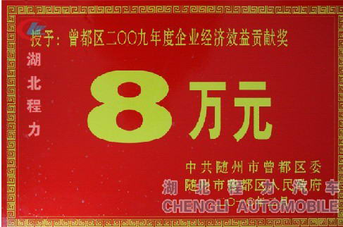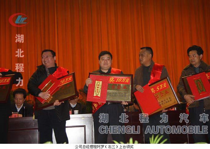 程力公司2009年稅收在汽車行業(yè)率先突破1000萬元,為隨州及曾都區(qū)的經(jīng)濟(jì)建設(shè)作出了突出貢獻(xiàn),分別獲得市政府十萬元獎(jiǎng)勵(lì)及區(qū)政府八萬元獎(jiǎng)勵(lì)。會(huì)上,市委書記馬清明同志親自為公司總經(jīng)理程阿羅頒發(fā)了獎(jiǎng)牌和獎(jiǎng)金,并對(duì)程阿羅總經(jīng)理說,咱們?cè)诔N瘯?huì)上,都感到程力公司2009年稅收能過千萬,是汽車行業(yè)一件了不起的事情,希望你們能再接再厲,為隨州經(jīng)濟(jì)工作作出大的貢獻(xiàn)。