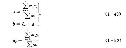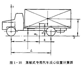 計算時可根據(jù)已有的資料,或利用試驗結(jié)果,也可用計算方法來確定專用車各總成的質(zhì)量及其質(zhì)心位置坐標(biāo),然后按照力矩平衡方程式,求出整車的質(zhì)心位置。對圖1-35廂式貨車縱向和高度的質(zhì)心座標(biāo)計算,有: