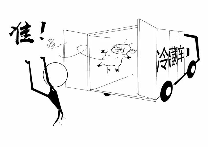 在車廂里經(jīng)過急速冷凍的豬肉都已經(jīng)